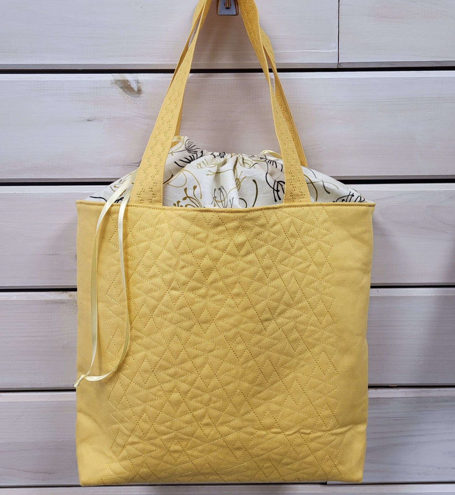 | Requirements: | Need to provide your materials for class: Main fabric 7/8 yard, Lining 7/8 yard, Fusible fleece 18x30, Ribbon (1/4") 2 yards, thread. |